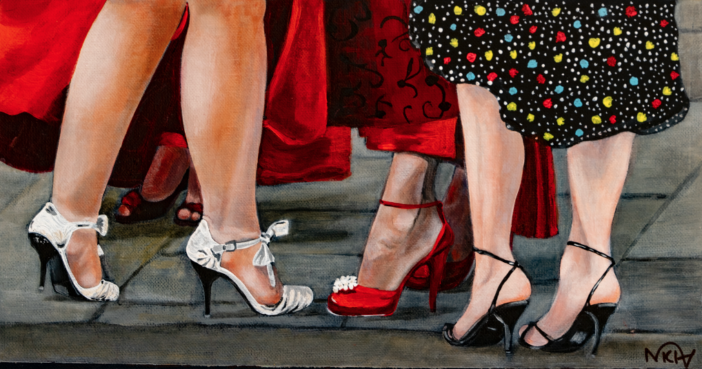 This last weekend the Art Show by the St. Thomas Art Guild just flew by. Three marvellous days of colourful artworks by local and regional artists drew hundreds of artlovers to the local Holiday Inn Express hotel. It was my first introduction as an artist to this group and in a way to the St. Thomas community as well. From the mix of 2025 and 2026 works, my ‘Shoe Stand-off’ was picked by the judge for an honorable mention! That was a nice surprise! The judge commented as follows: