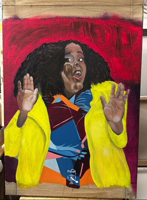 My mind started in my comfort zone: a portrait. Since this was at the end of Covid, I thought of the sorrowful images of elderly people not being allowed ‘live visitors’. I searched the internet for appropriate references, but strangely enough, the same faces kept turning up. The market of elderly models must be very limited and the same senior faces kept popping up. Initially I wanted to do a sad face, looking out from behind the geraniums in the window sill. Then I thought about bringing in a 3D effect in the shape of the silhouette of a visitor, with their hand on the window, seeking contact. But I dismissed it in the end: it was all too elaborate and contrived. And above all: quite sad. So I decided to put the frame to the side and pray for a better subject.