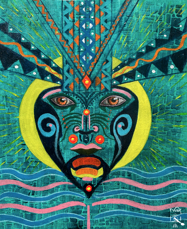 But no more of that. As pretty as virgin snow is, I still prefer warmer weather. I know it will come, it always does, but the end of May still seems like very far away. So, I wanted to bring some colour to this day. I named this new work ‘The Mask’. There is no special meaning to it other than working with my favourite colours and of course including a pair of eyes. You can interpret it anyway you like. I was content with the results! Enjoy!