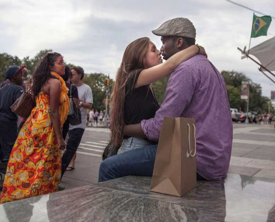 Do you like that the kissing couple is isolated and that more attention now goes to the look they are getting from the lady in orange?