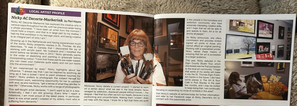 I thought you might be interested in this interview, that appeared in the local magazine ‘Hometown’ of the city of St. Thomas. It came too late for the Elgin County Studio Tour and then Canada Post went on strike, so many may have missed it. Thanks to journalist Peri Hayes for making the interview into a very entertaining personal meeting!