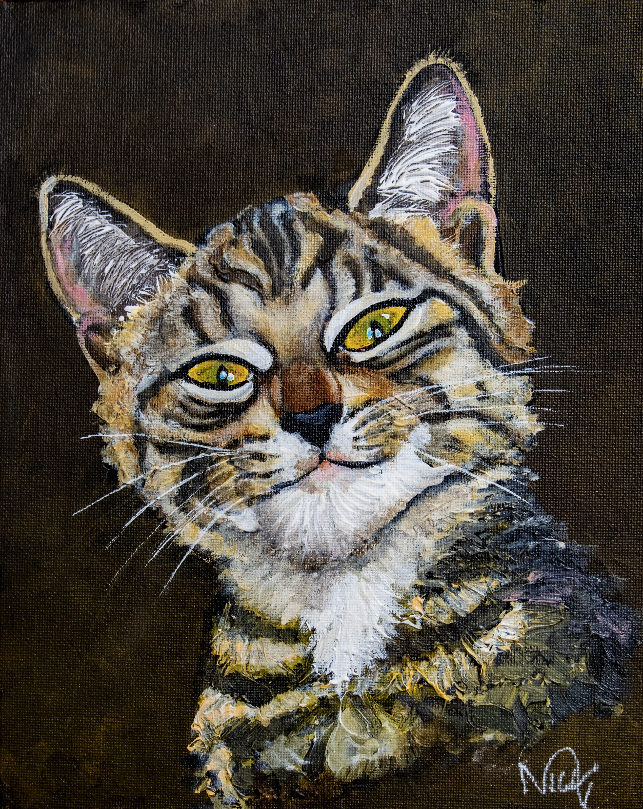 Like I said: some of my smaller cat original paintings have now found new owners. But I had 4 printed on canvas by my favourite art printer. Have a look, and I assure you that they look just like the original! They are just like rescues: just waiting for you to take them home!